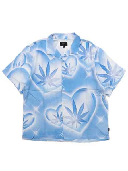 【送料無料】HUF LOVE IN THE AIR RESORT SHIRT POOL BLUE [BU00245-PBL-LIGHT BLUE]