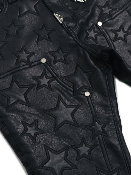【送料無料】GUAPI OBSIDIAN BLACK STARS LEATHER PANT