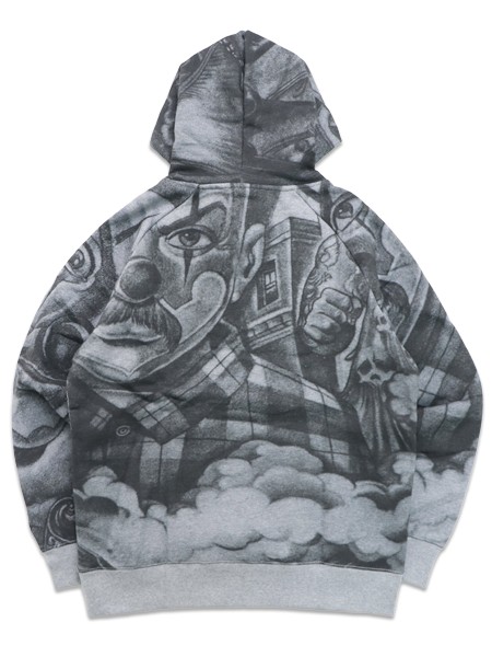 【送料無料】PRO CLUB MISTER CARTOON TATTOO PULLOVER HOODIE HEATHER GREY