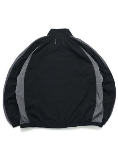 メッシュ裏地のトラックジャケットは生地に撥水加工を施したコントラストパネルのクリンクルナイロンを使用して製作。Standard Fitが特徴で、デザインにはモックネック、YKKビスロンダブルジップ、複数のジップポケット、伸縮性のある袖口と裾、左胸の刺繍ロゴを採用しています。
