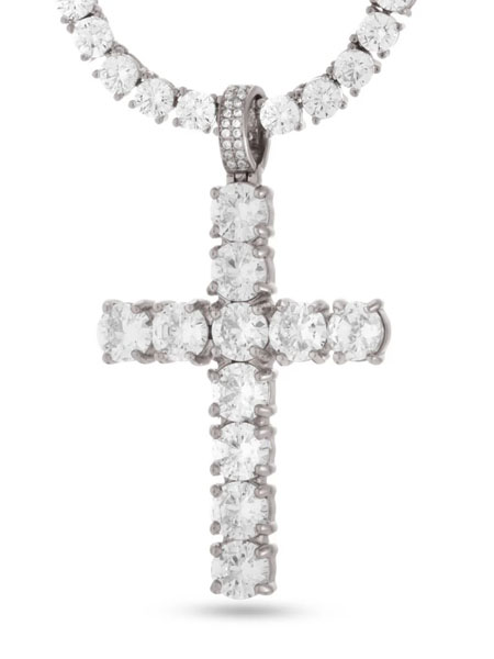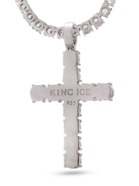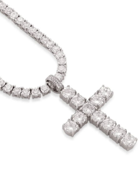 【送料無料】KING ICE TENNIS CROSS 2.2" NECKLACE WHITE GOLD