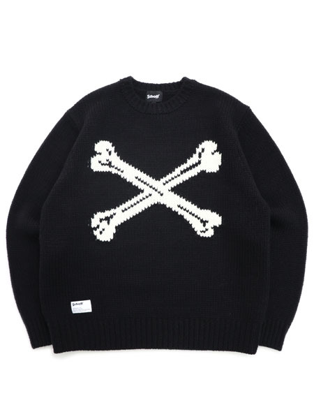 【送料無料】SCHOTT CROSS BONE KNIT BLACK