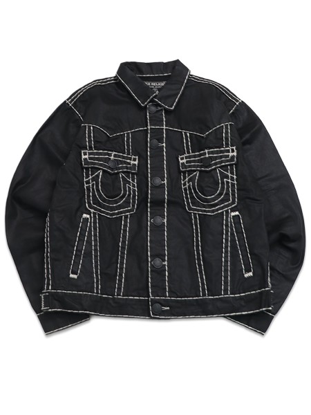 【送料無料】TRUE RELIGION OVERSIZED SUPER T COATED DENIM JACKET COATED BLK
