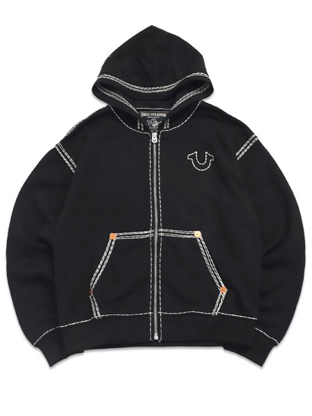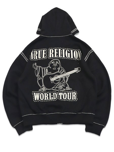 【送料無料】TRUE RELIGION SUPER QT BOXY ZIP HOODIE JET BLACK