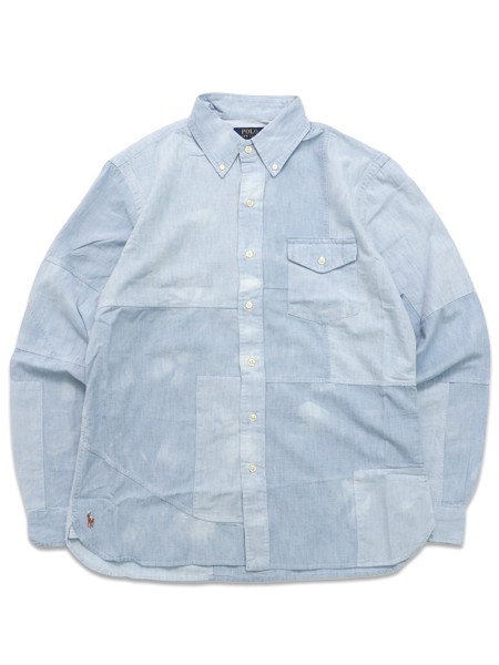 【SALE】【送料無料】POLO RALPH LAUREN PATCHWORK PIECED CHAMBRAY LS SHIRT