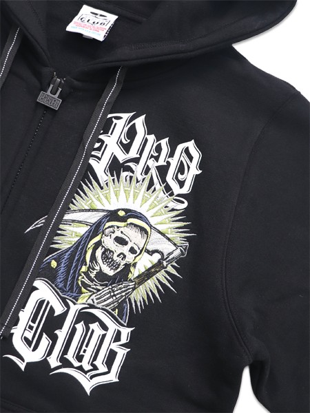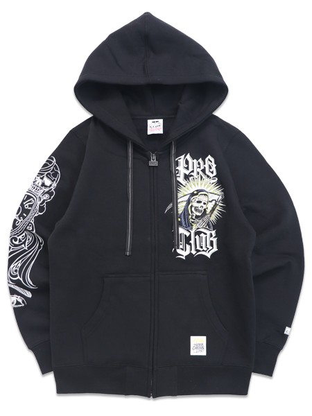 【送料無料】PRO CLUB MISTER CARTOON CLOCKWORK BLACK ZIPUP HOODIE BLACK [PCT3002-BLK-BLACK]